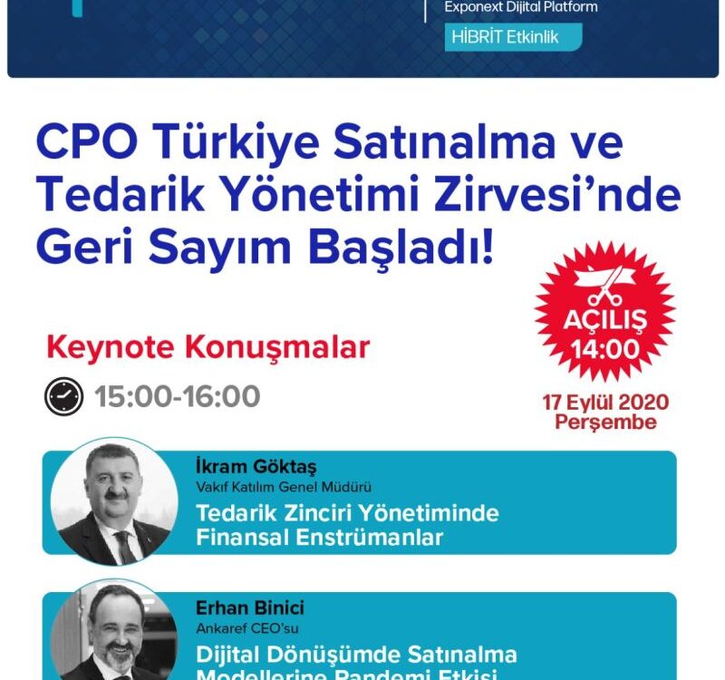 CPO Türkiye Satınalma ve Tedarik Yönetimi Zirvesi, 17 Eylül’de İTO Merkez Binası ve Exponext Dijital Platform olmak üzere hibrit bir model ile açıldı. Pandemi sonrası yeni […]